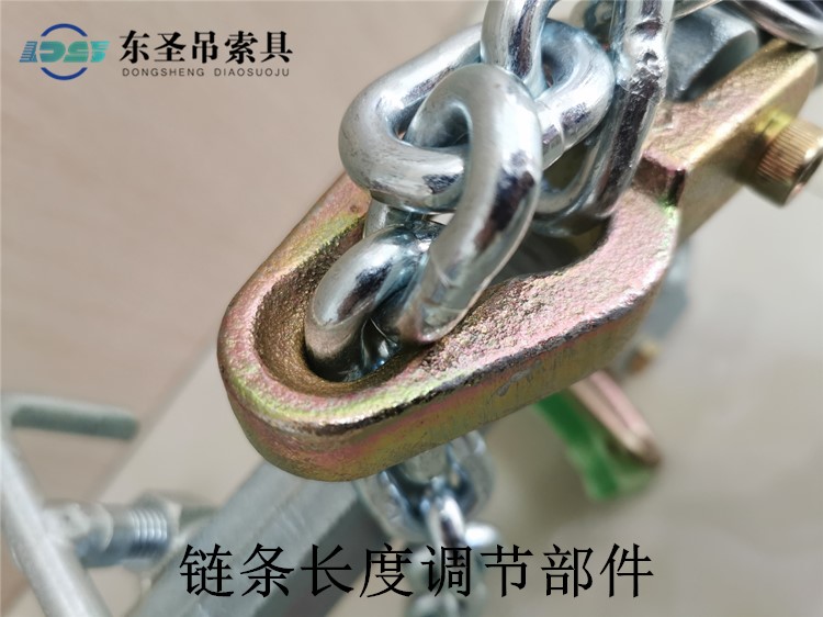 • 東圣吊鏈?zhǔn)降鯅A夾具上的鏈條使用的是80級(jí)起重鏈條,表面為鍍鋅,可以更好的起到防銹的作用。80級(jí)起重鏈條抗拉力性強(qiáng),硬度較高,并且有一定的韌性,耐磨。 東圣吊夾采用80級(jí)起重鏈條